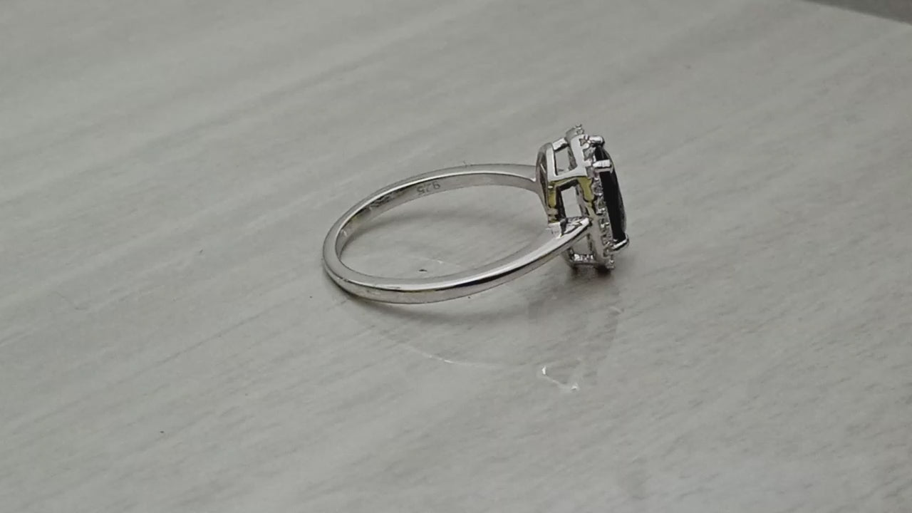 8x6MM Oval Blue Sapphire & White Accents Ring - Sterling Silver