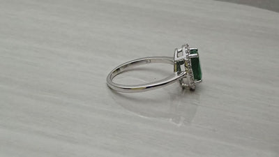 8x6MM Oval Emerald & White Accents Ring - Sterling Silver