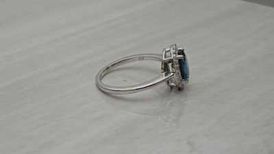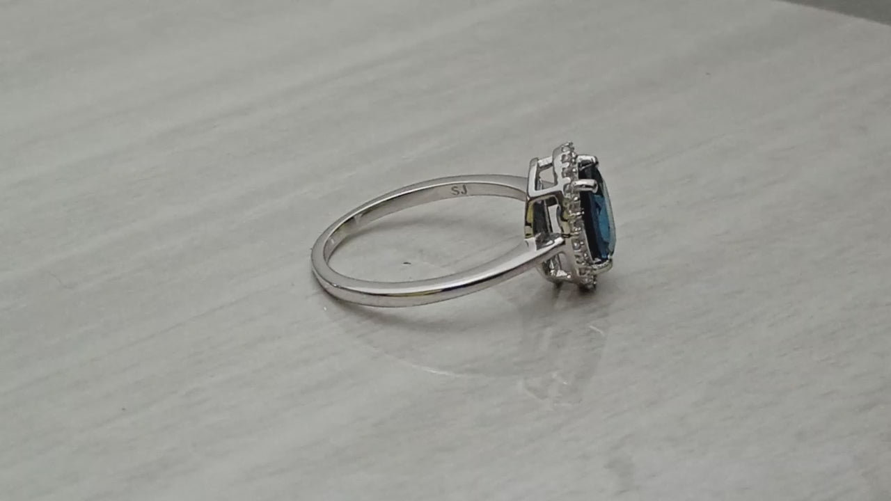 Deep and sophisticated, this stunning ring showcases an 8x6 mm oval-cut London blue topaz, beautifully accented by sparkling white stones. Crafted in polished 925 sterling silver, the rich teal-blue hue of the London blue topaz exudes timeless elegance, while the delicate white accents enhance its brilliance. Perfect for engagements, anniversaries, or adding a luxurious touch to your everyday style, this ring is a refined symbol of beauty and grace.