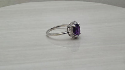 Amethyst Oval Solitaire Halo Ring - Sterling Silver