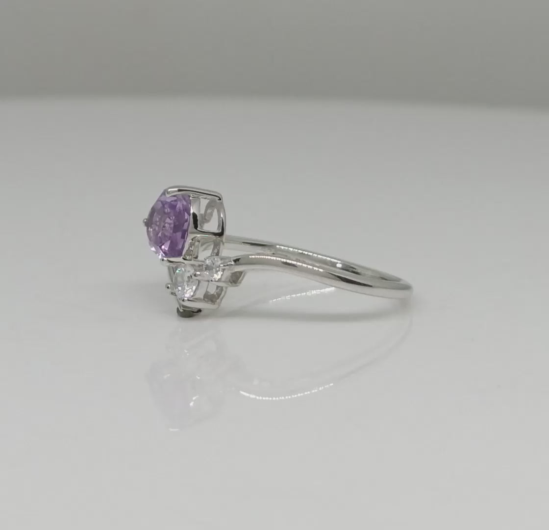 925 Sterling Silver Heart 0.85 Ct Amethyst Ring – Elegant Side Accent Design
