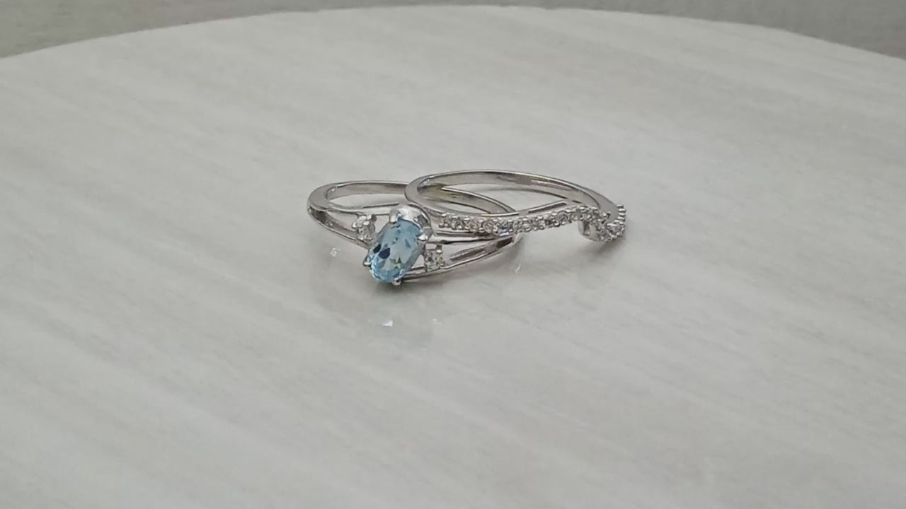 Elegant two-piece ring set with oval-cut aquamarine and coordinating band