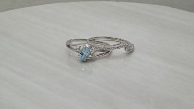 Aquamarine 2pc Band Stackable Ring Set-Sterling Silver