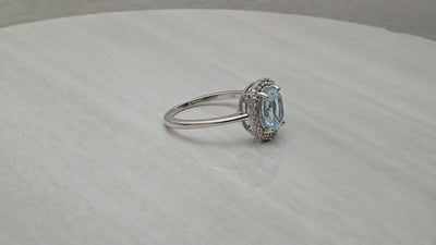 Aquamarine Oval Solitaire Halo Ring - Sterling Silver