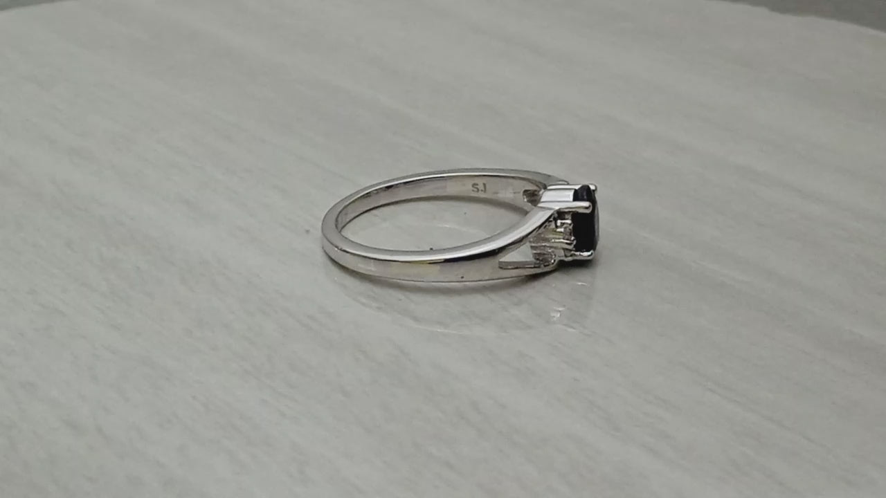 Black Spinel 6x4 MM Oval Solitaire Ring - Sterling Silver