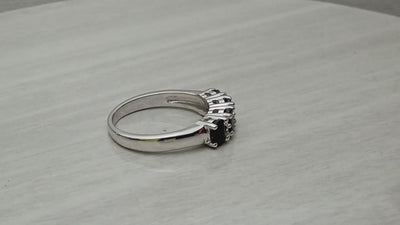 Sophisticated and striking, this four-stone ring features rich oval-cut black sapphires interspersed with brilliant white accent stones. Set in solid 925 sterling silver, this classic band-style ring adds a bold and elegant touch to your everyday or evening look.