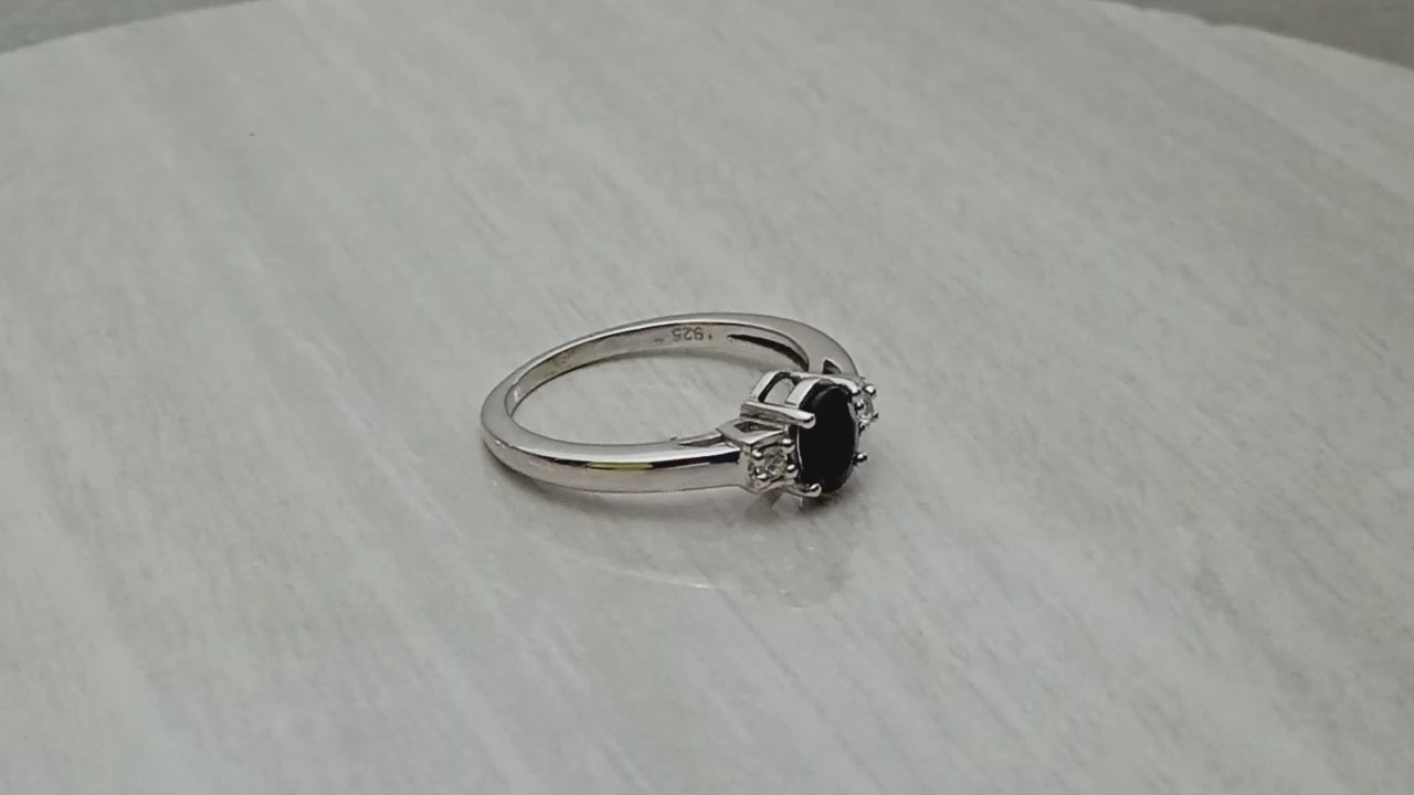 Blue Sapphire Oval and White Topaz Accent Ring - Sterling Silver