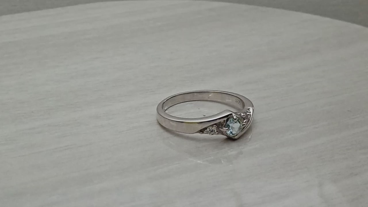 This exquisite ring showcases a serene round-cut blue topaz nestled at the heart of a gracefully bypassed sterling silver band. Accentuated by sparkling white stones on either side, the design is both elegant and modern—perfect for everyday wear or as a thoughtful gift to celebrate life's cherished moments.