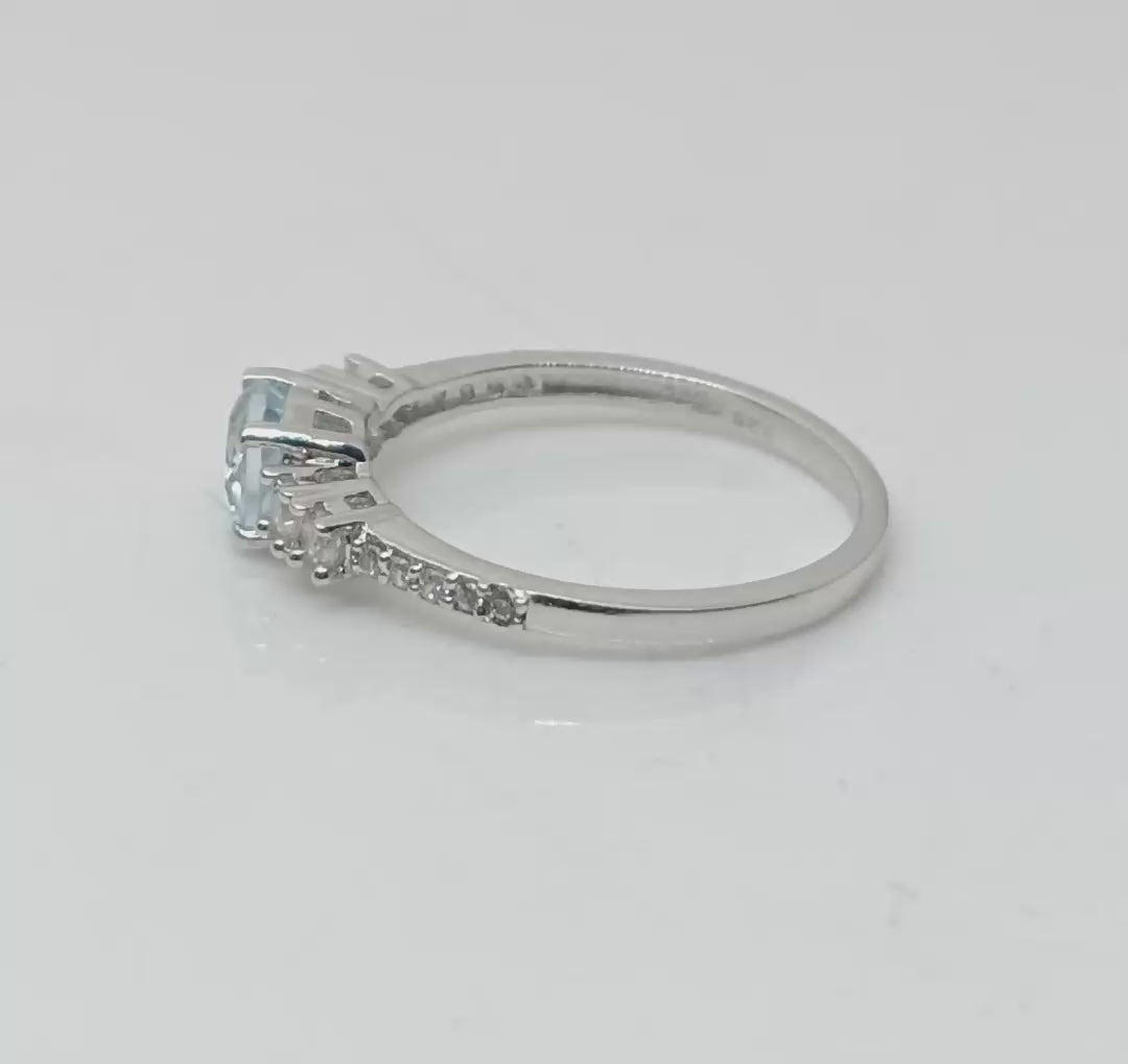 Add a serene touch of color to your jewelry collection with this elegant blue topaz ring. Crafted in solid 925 sterling silver, it showcases a vivid 5MM round natural blue topaz (approx. 0.70 carat) held securely in a timeless four-prong setting. Shimmering accent stones line the shoulders and sides of the band, enhancing the crisp blue center stone with graceful sparkle. Perfect for daily wear, December birthdays, or celebrating life’s meaningful moments with a piece that radiates tranquil sophistication.