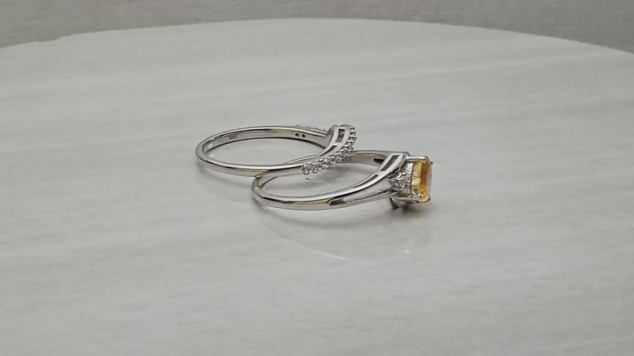 Citrine 2pc Band Stackable Ring Set-Sterling Silver