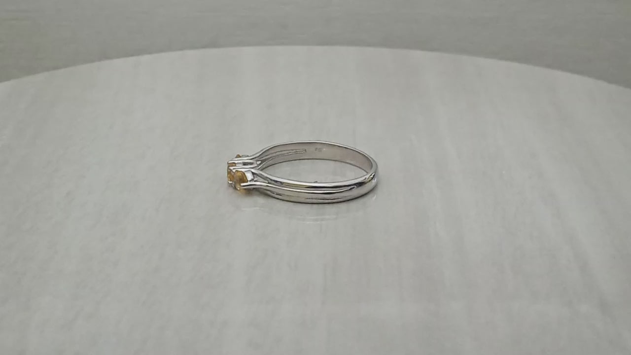 Citrine Round Three-Stone Women Ring-925 Sterling Silver