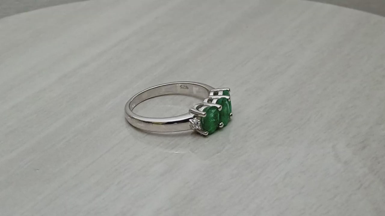 Timeless and symbolic, this Three-Stone Emerald Ring is crafted in solid 925 Sterling Silver and showcases three lush 6x4 mm oval-cut emerald gemstones. Representing the past, present, and future, the trio design adds depth and meaning to this elegant piece. With its rich green hues and polished silver finish, this ring is a graceful expression of love, growth, and enduring connection.