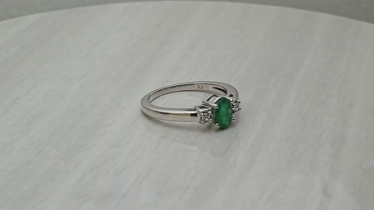 Graceful and meaningful, this 925 Sterling Silver Ring features a vivid oval-cut emerald at its center, beautifully flanked by sparkling white topaz accents. The open gallery design adds light and dimension, enhancing the natural allure of the green gemstone. Symbolizing growth and renewal, this ring is perfect for May birthdays, anniversaries, or elegant everyday wear.