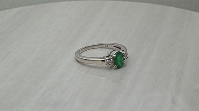 Emerald Oval and White Topaz Accent Ring - Sterling Silver