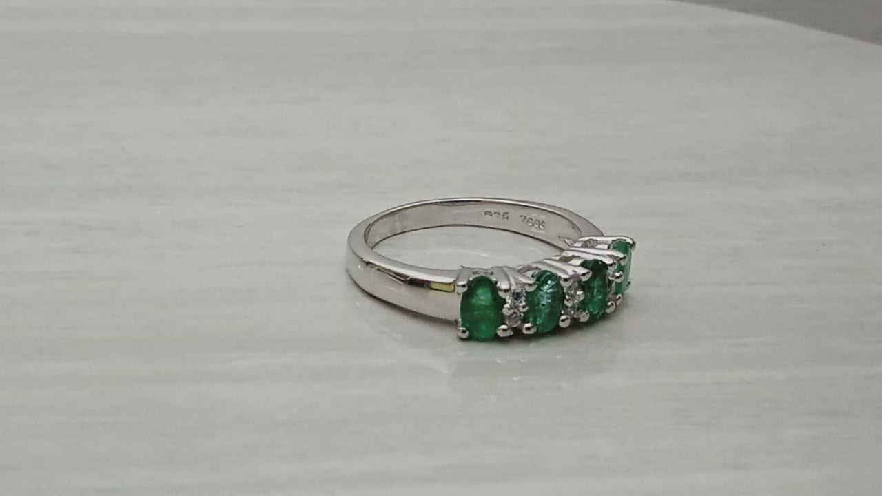 Emerald Oval Four-Stone Band Ring – Sterling Silver