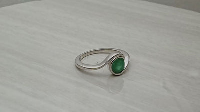 Embrace timeless sophistication with this modern solitaire ring featuring a serene green round-cut emerald set in a fluid twisted band. Crafted in solid 925 sterling silver, this contemporary ring combines graceful lines with the earthy allure of emerald, making it a charming choice for daily wear or meaningful gifting.