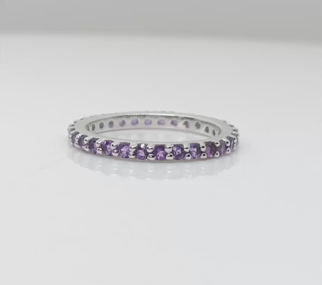 Eternity Band 925 Sterling Silver Round 2 MM Amethyst Ring