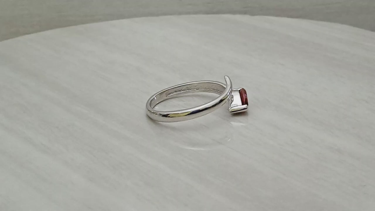 Radiate passion and elegance with this stackable engagement ring, featuring a striking 8x4 mm marquise-cut garnet (approx. 0.70 carat) set in solid 925 sterling silver. The deep red gemstone brings timeless romance, while the slim band makes it perfect for stacking with other rings. Whether worn solo or layered, this ring is a graceful expression of love and style.