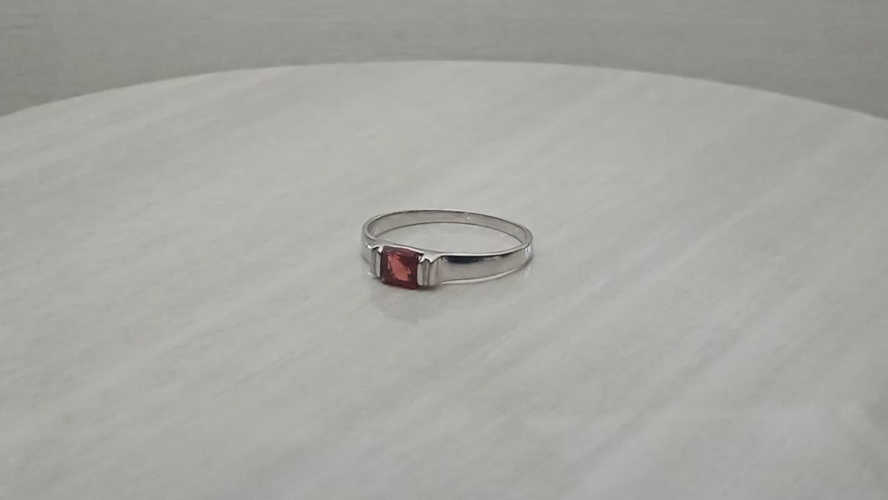 Garnet 4MM Princess Cut Stacking Ring - Sterling Silver
