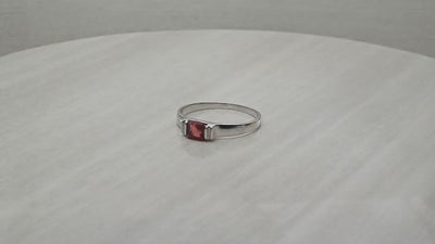 Elegant and timeless, this ring features a striking 4 mm princess-cut garnet set in polished 925 sterling silver. The deep red hue of the natural gemstone symbolizes love and passion, making it a meaningful choice as a delicate wedding band, anniversary ring, or for stacking with other favorites. Its clean, modern silhouette effortlessly enhances any jewelry collection with a touch of classic romance.