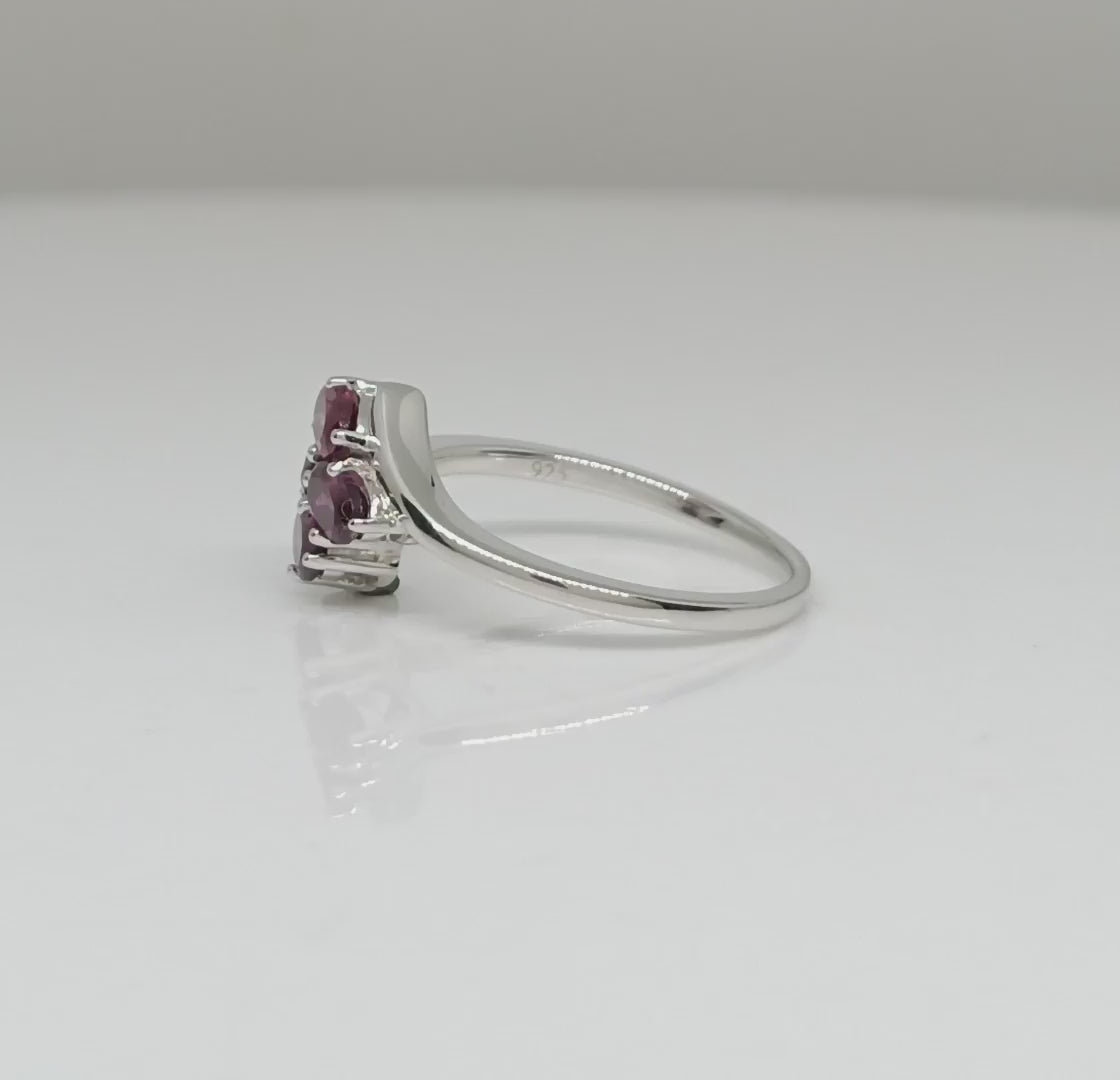 Radiate warmth and sophistication with this exquisite cluster ring, featuring four vibrant 5x3 mm oval-cut garnet gemstones arranged in an elegant floral-inspired setting. Crafted in solid 925 sterling silver, this ring beautifully combines the deep red allure of garnet with a sleek, modern band that gracefully wraps around the finger.