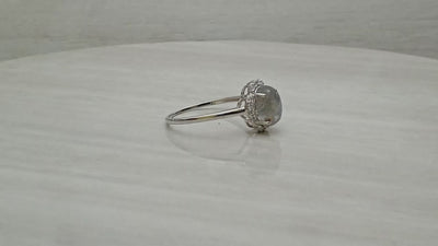 Labradorite Oval 8x6 MM Solitaire Halo Ring - Sterling Silver