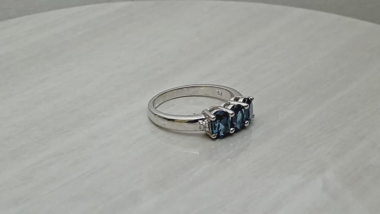 London Blue Topaz 6x4MM Oval Three-Stone Ring - Sterling Silver