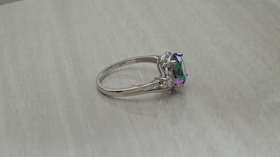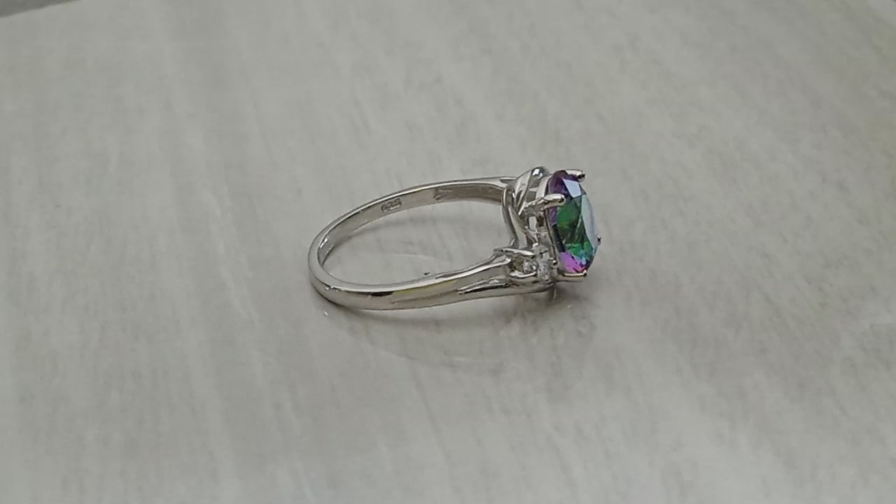 Mystic Topaz Oval Split Shank Ring - Sterling Silver