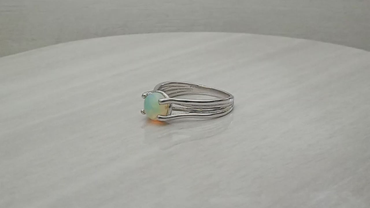 Opal Round 8mm Solitaire Ring - Sterling Silver