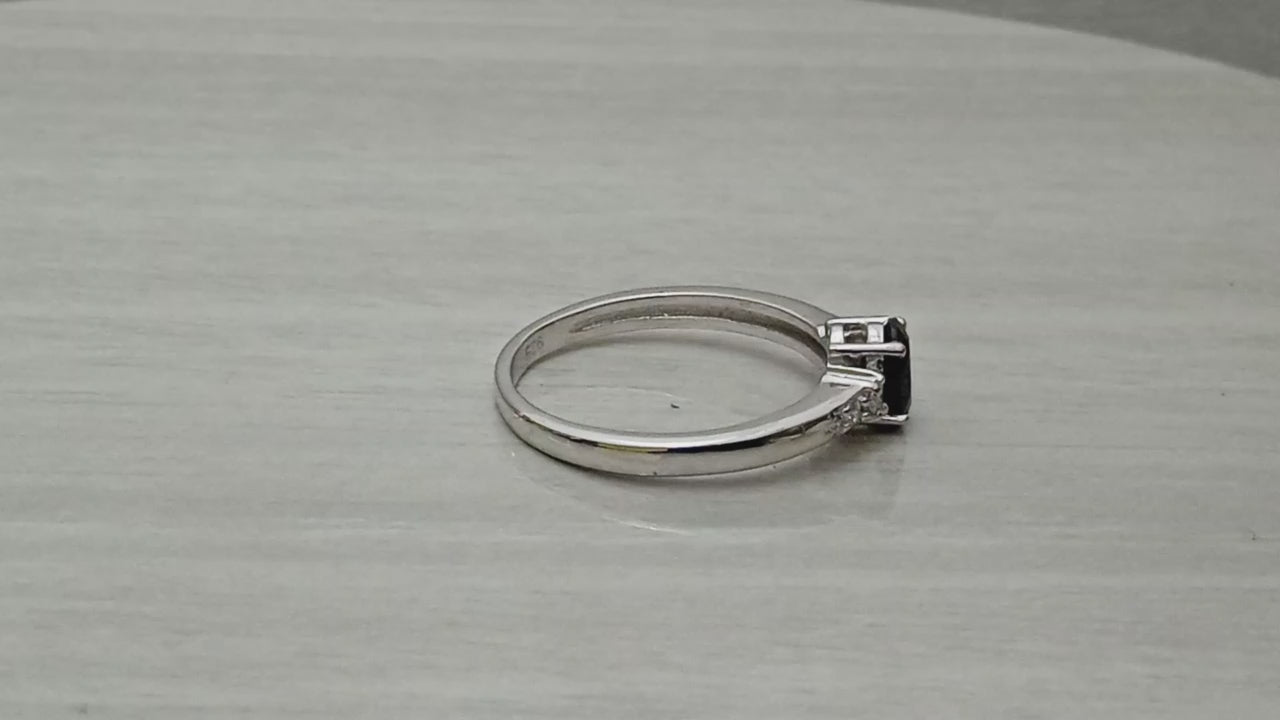 Striking and sophisticated, this engagement ring showcases a captivating 6x4 mm oval-cut black spinel at its center, beautifully accented by delicate white stones along the band. Crafted in polished 925 sterling silver, the deep black hue of the natural spinel exudes bold elegance and modern charm. Perfect as an engagement ring, anniversary piece, or a meaningful gift, this ring blends timeless style with dramatic contrast.