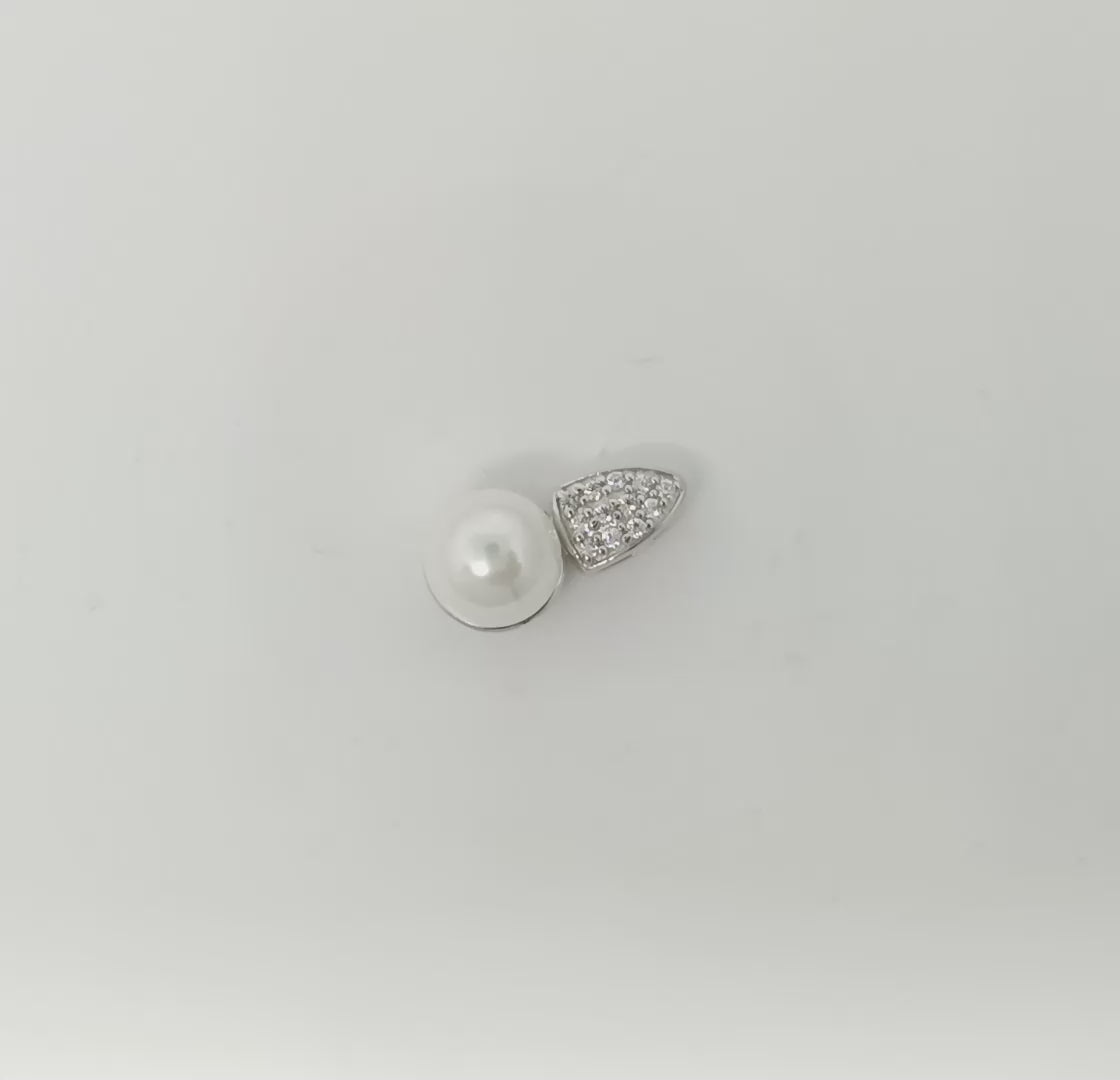 Celebrate grace and minimal elegance with this refined pendant featuring a 10x10 mm round pearl beneath a shimmering triangle-shaped bail adorned with pavé-set stones. The sleek design effortlessly blends classic charm with modern luxury—perfect for everyday sophistication or gifting on special occasions.