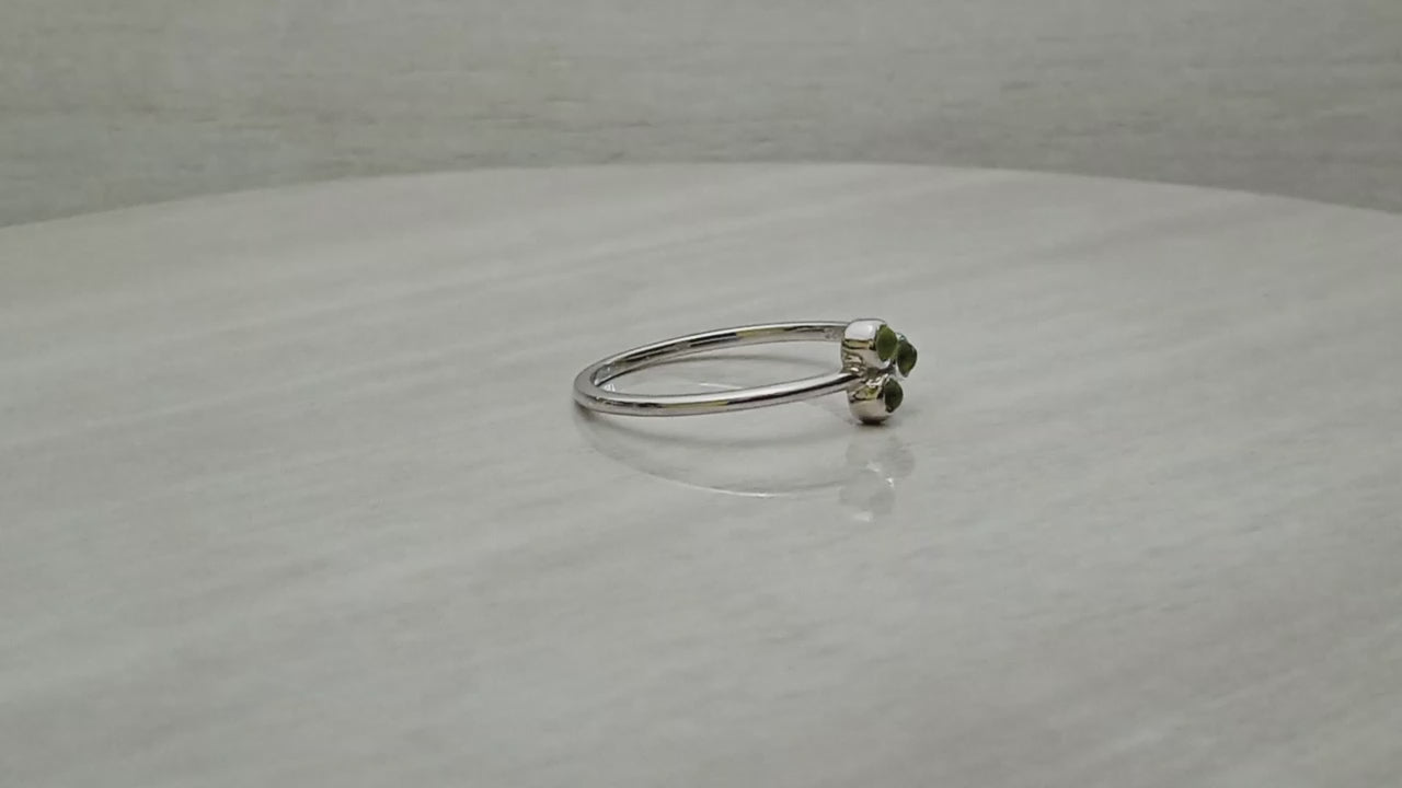 Minimalist slim band with petite round cabochon-cut peridots, perfect for stacking