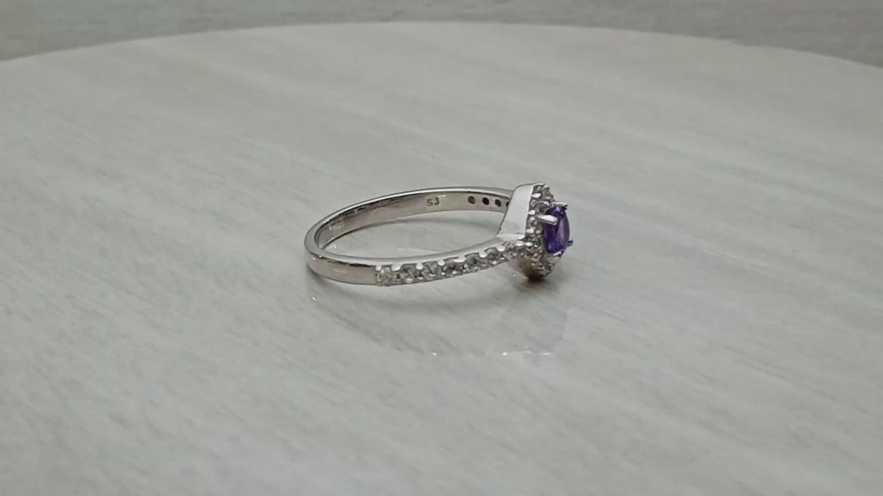 Design: Highlights the amethyst’s deep purple tones with bright white highlights
