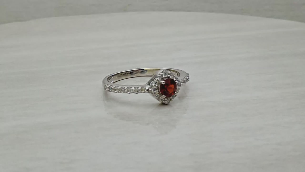 Solitaire Round Garnet & White Accents Ring-Sterling Silver