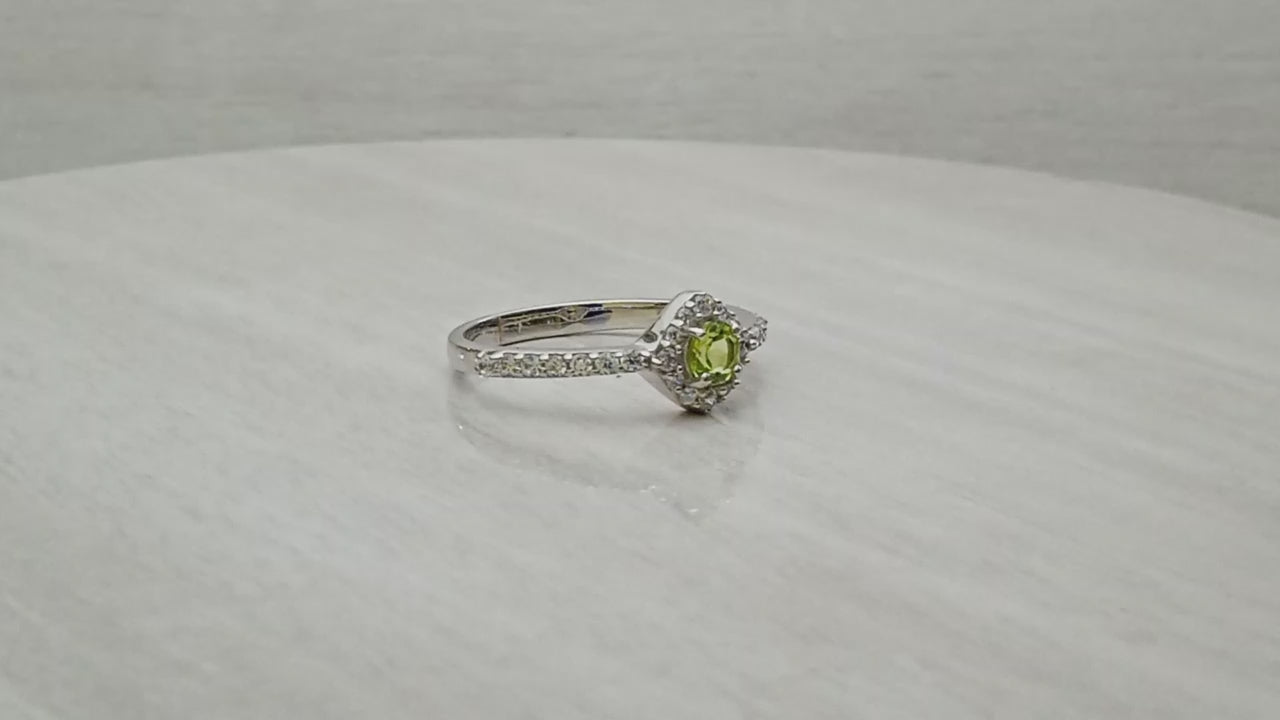 Classic solitaire ring with round peridot and sparkling white accents