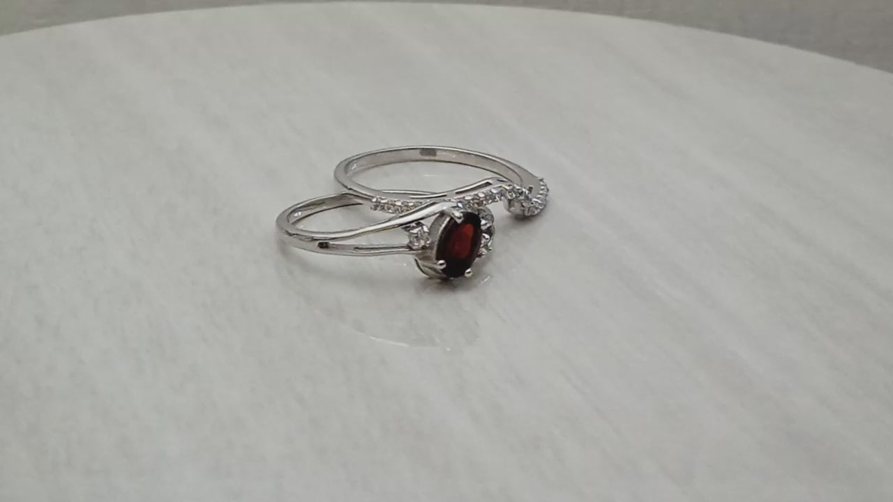 Garnet 2pc Band Stackable Ring Set-Sterling Silver