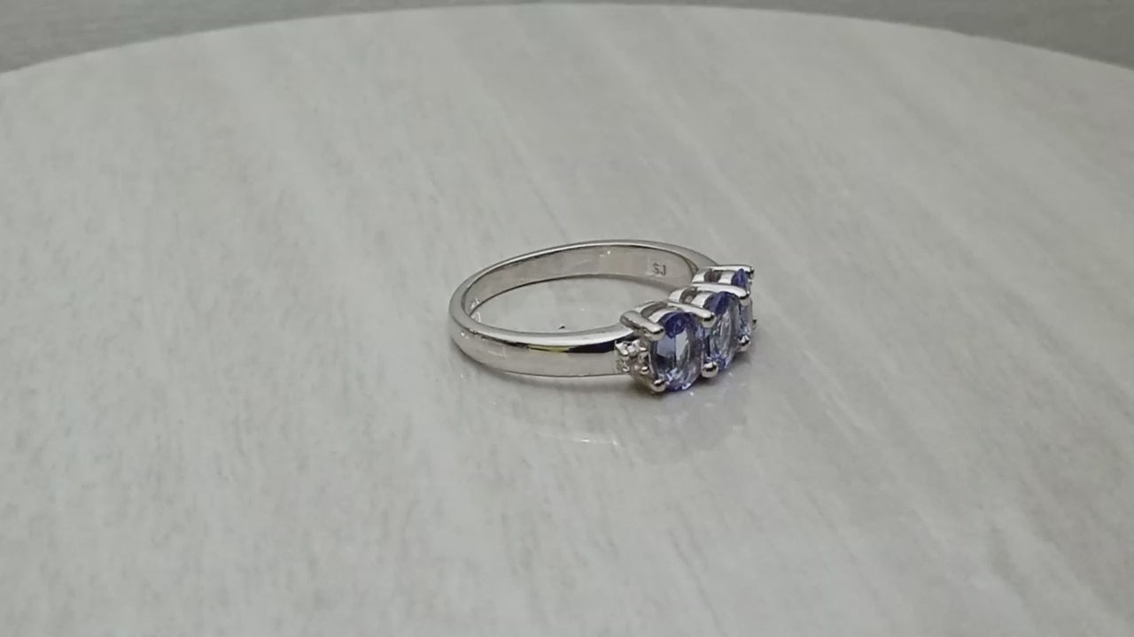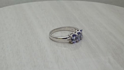 Tanzanite 6x4MM Oval Three-Stone Ring - Sterling Silver