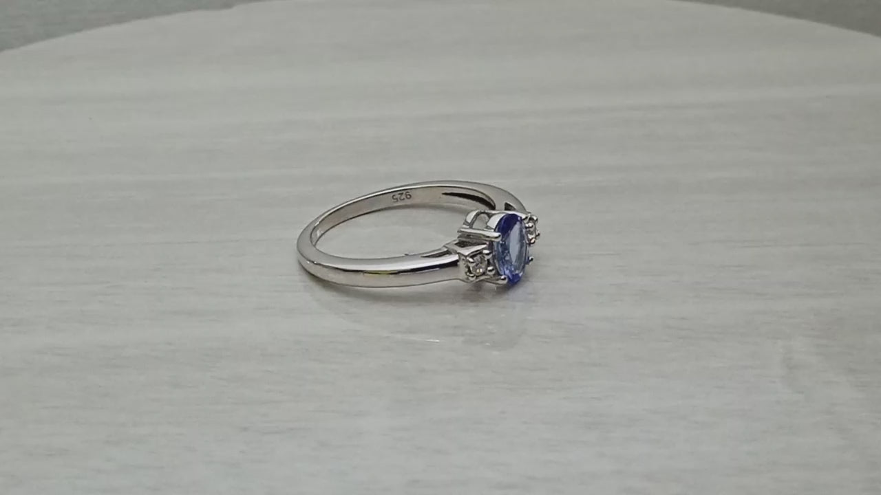 Tanzanite Oval and White Topaz Accent Ring - Sterling Silver